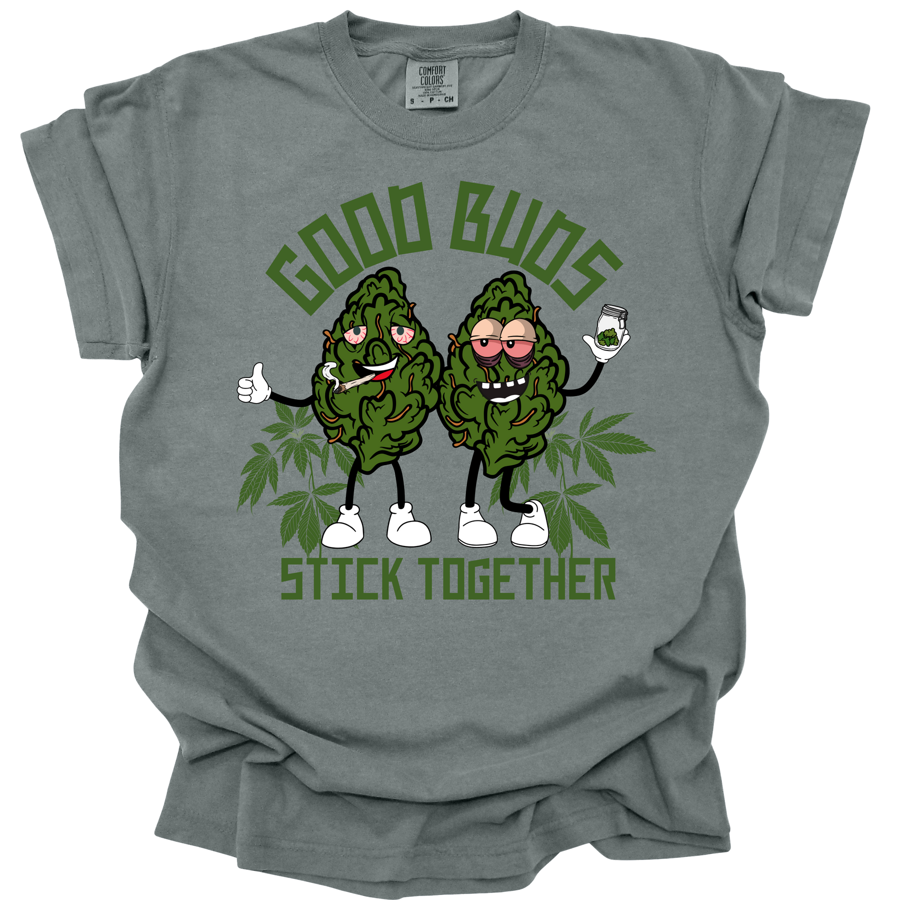 Comfort Colors T-Shirt in the color Granite with the design Good Buds Stick Together.