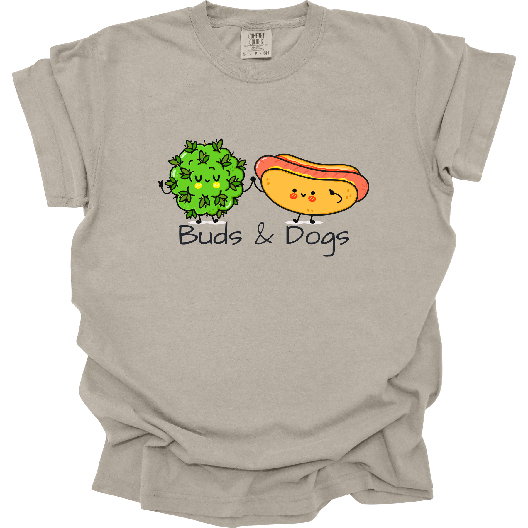 Comfort Colors Unisex T-Shirt in the color Sandstone with the design "Buds & Dogs".