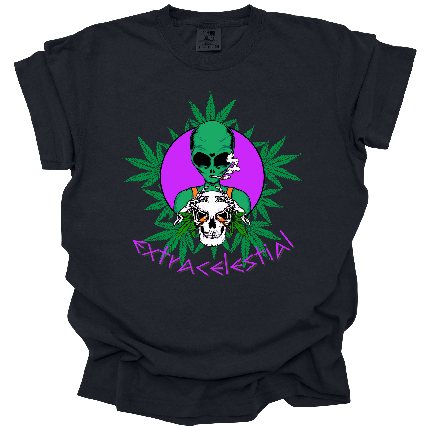 Comfort Colors Unisex T-Shirt in the color Black with the design "Extracelestial" on the front of T-Shirt.