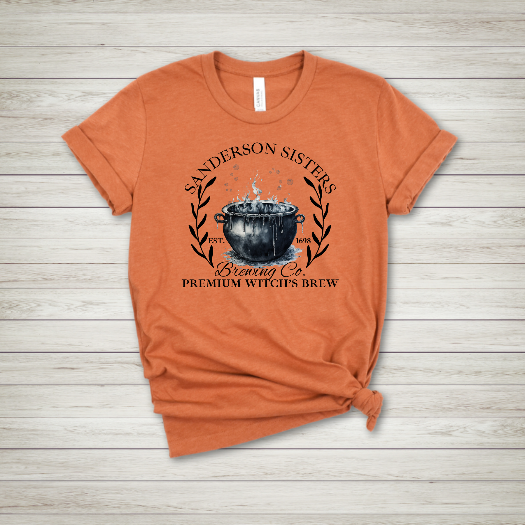 Bella Canvas T-Shirt in the colors Heather Natural or Heather Autumn with the designs "Sanderson Sisters, Brewing Co."