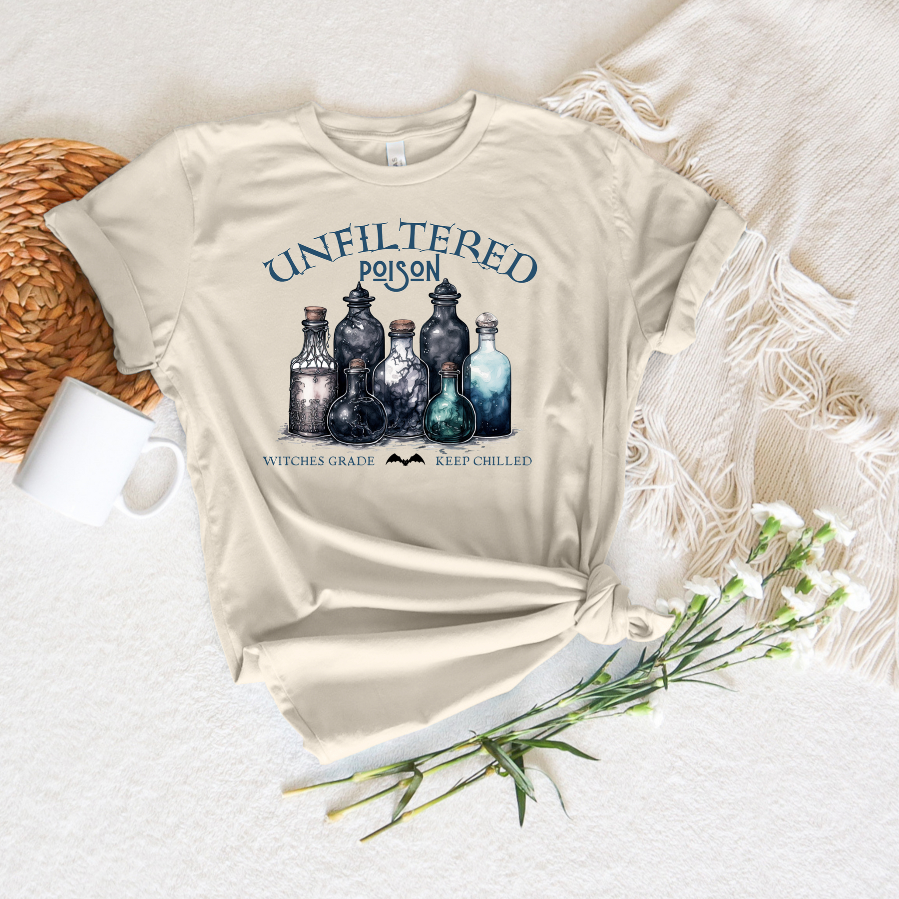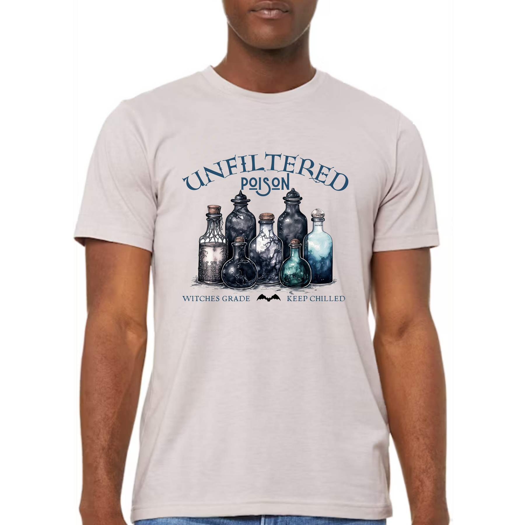 Bella Canvas T-Shirt in the colors Heather Natural or Heather Cool Gray with the design "Unfiltered Poison".